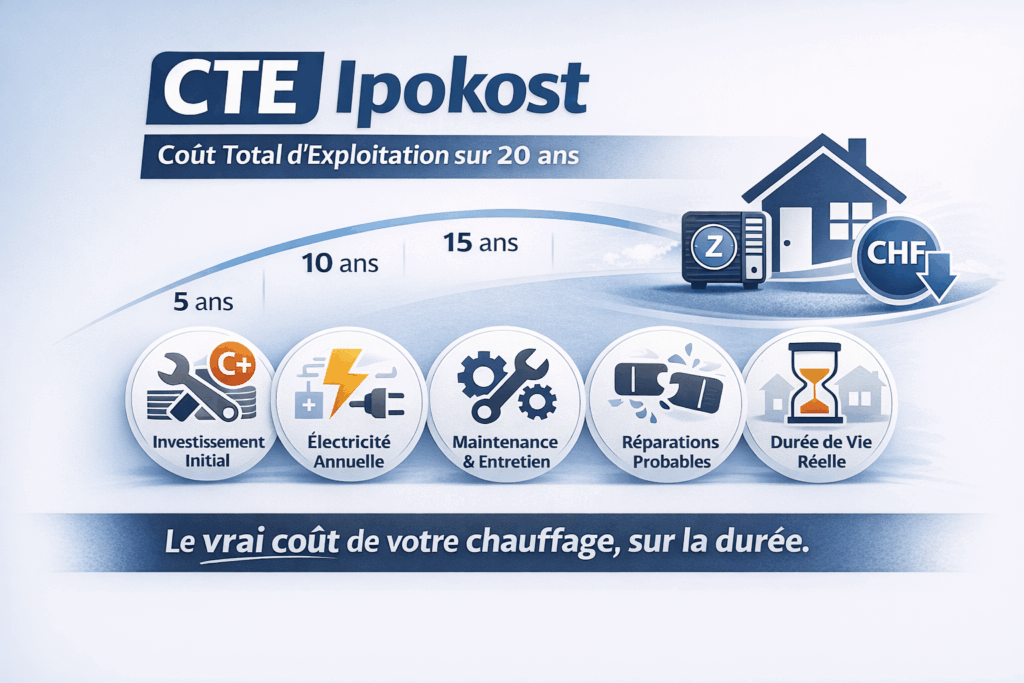 Une pompe à chaleur ne revient pas plus cher à entretenir qu’une chaudière. Chez Ipokost, nous assurons le service d’une pompe à chaleur pour CHF 450/an. - Coût des dépannages